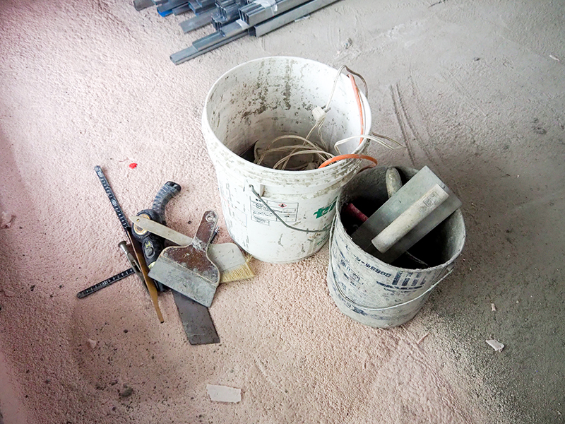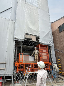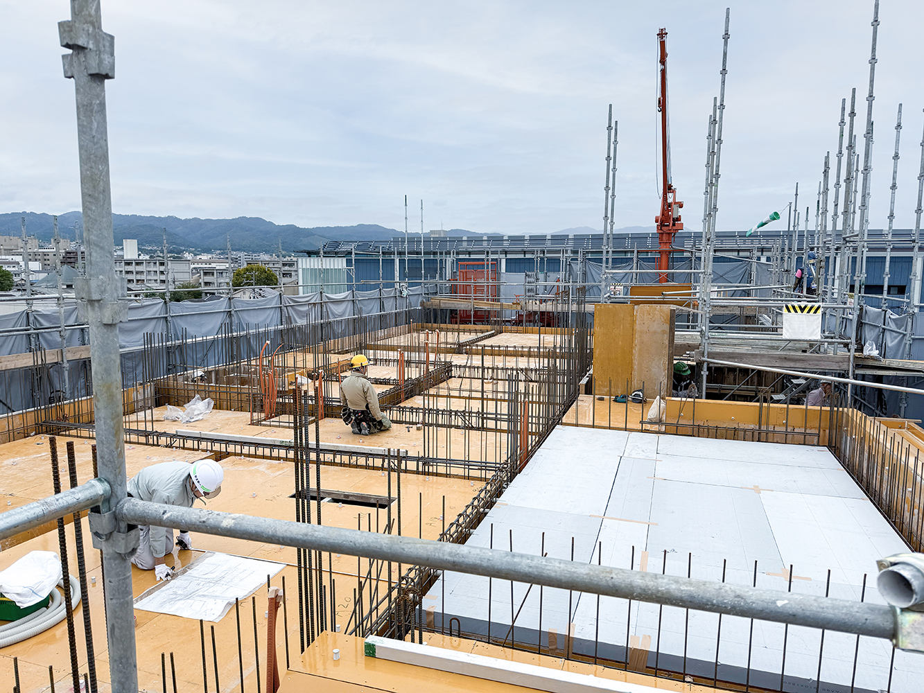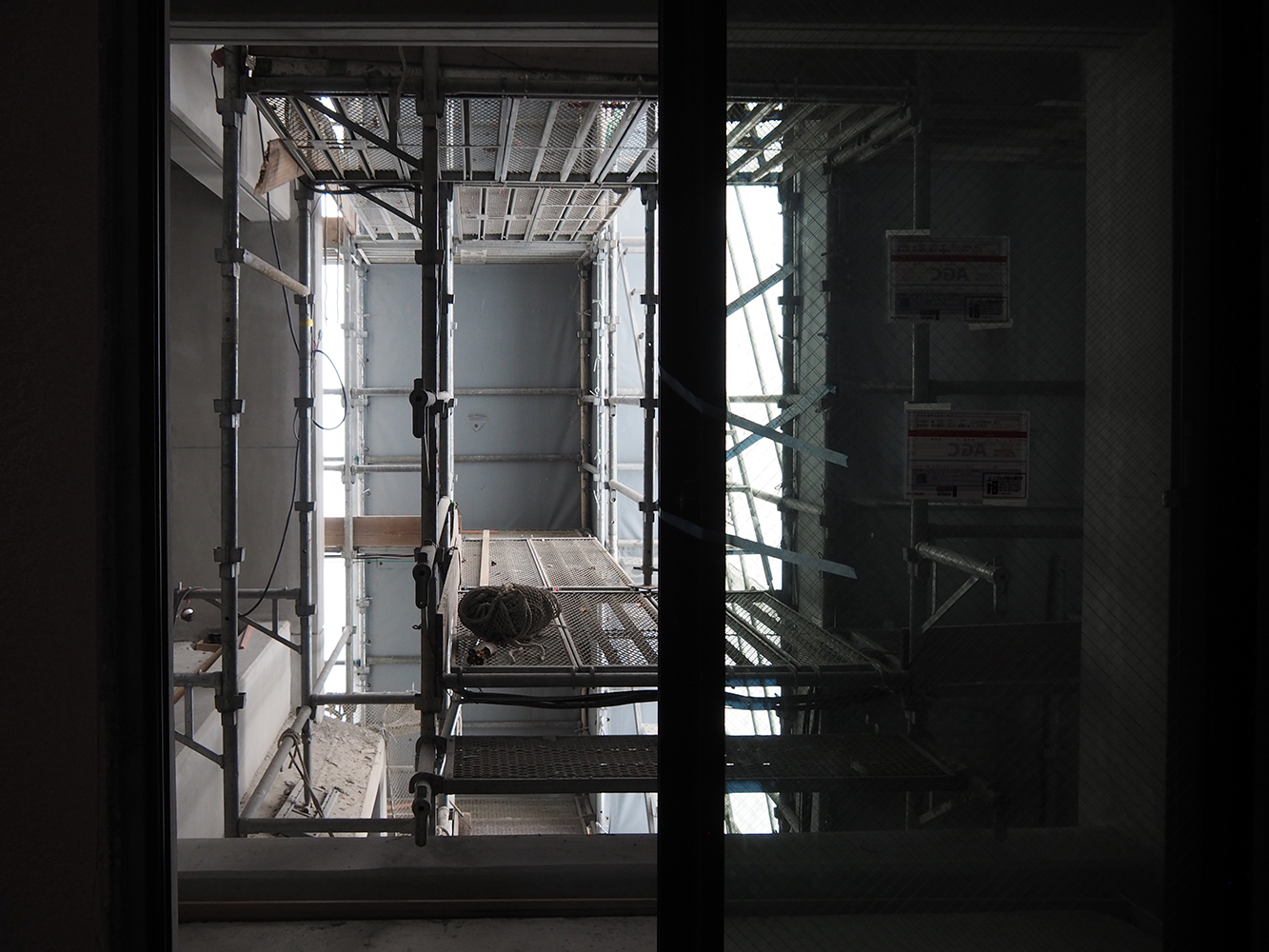 打設の日のにぎやかさとは対照的な、自然光に照らされた無骨な陰影。