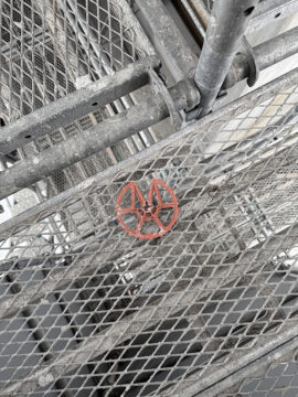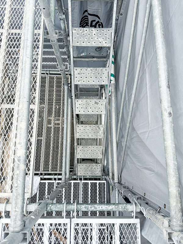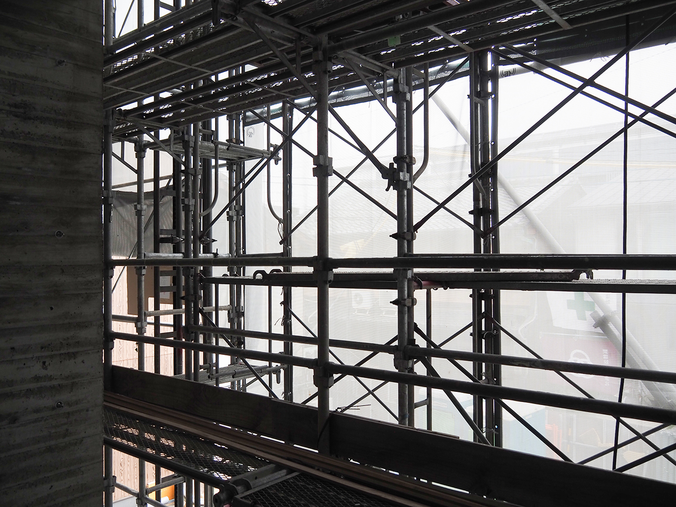 打ちっぱなしのコンクリートと足場のコントラスト。