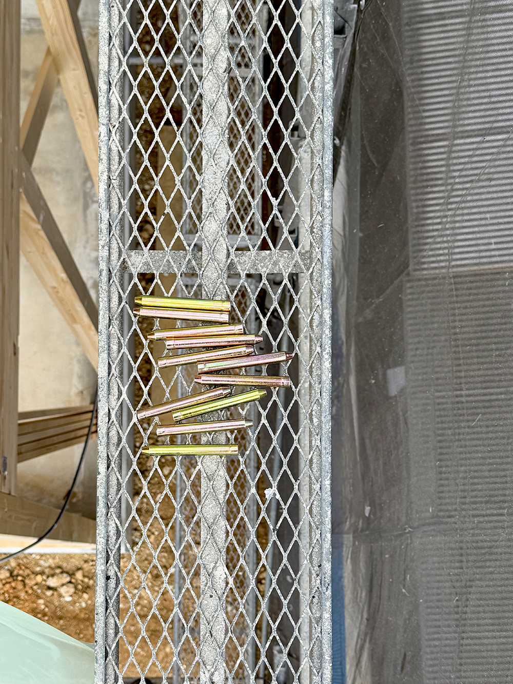 誰もがあこがれる(だろう)足場階段であるが、なかなか高さがあって怖い。
