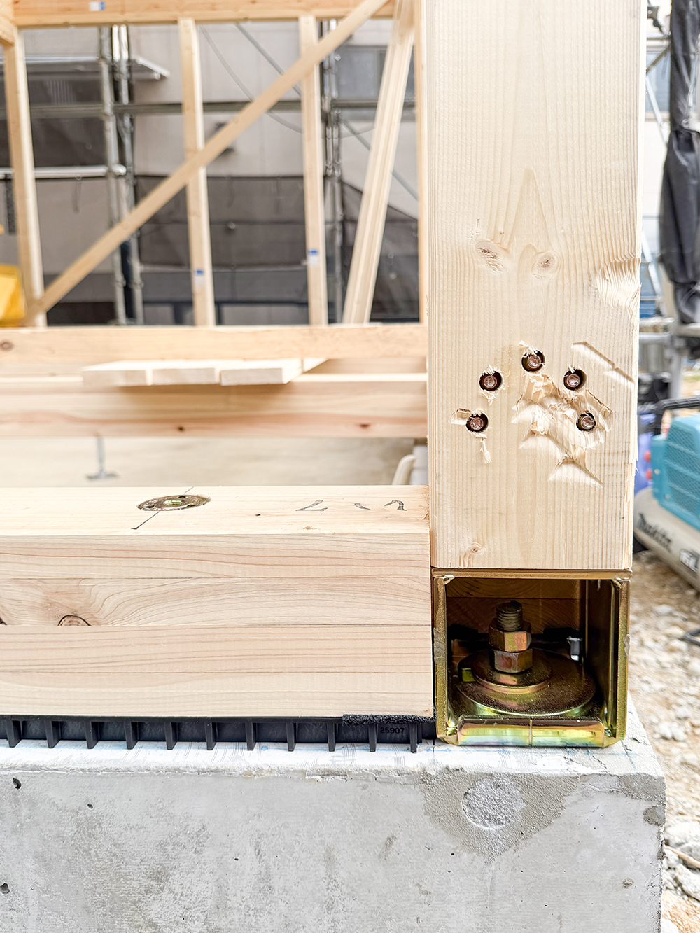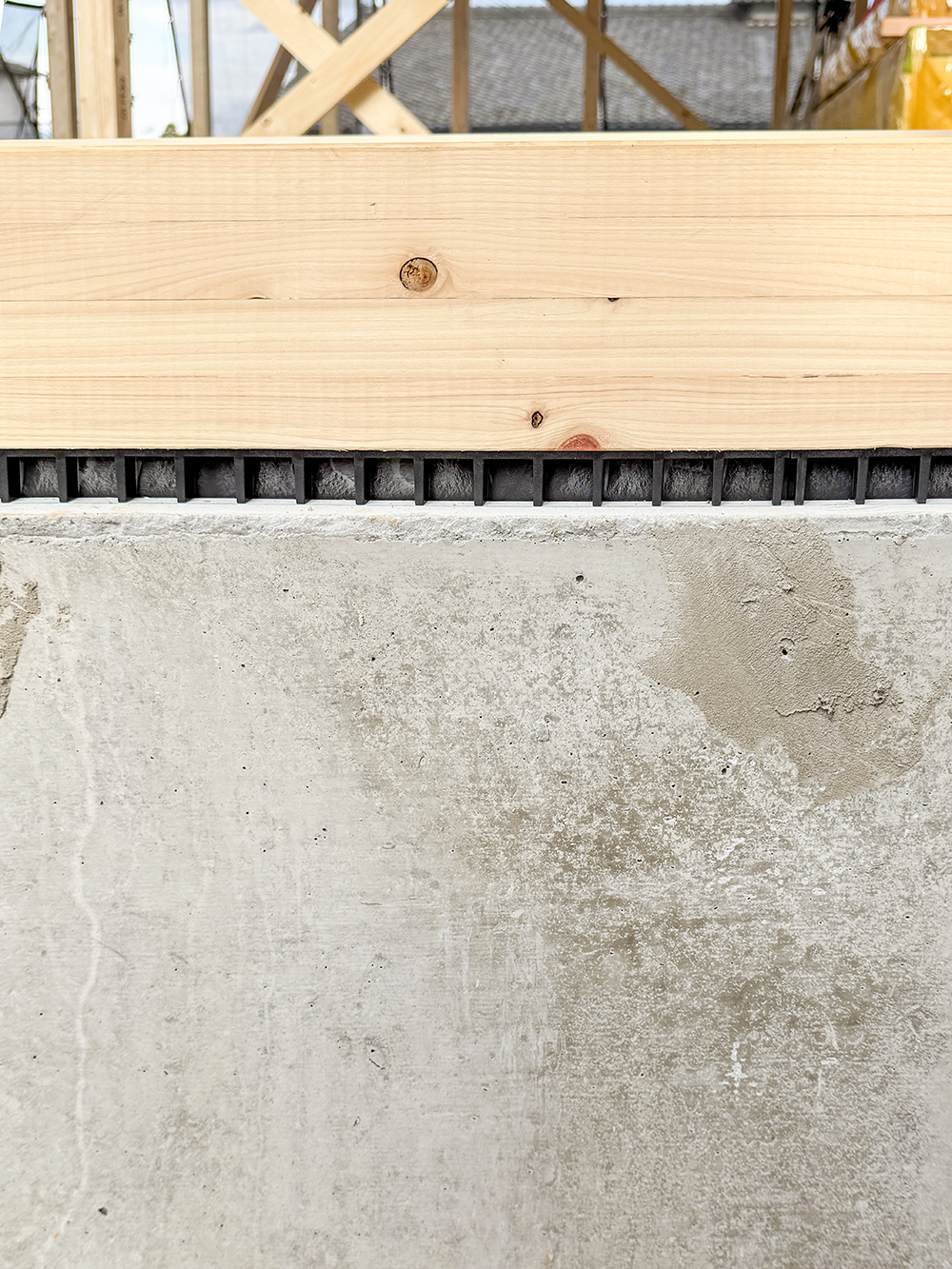 コンクリートと土台の間に黒い「基礎パッキン」ていうのが