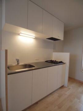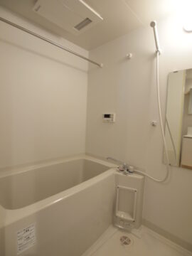 オートロック、防犯カメラ、駐輪場(自転車1台のみ)、宅配BOX、BS・CSアンテナ、システムキッチン(ガス2口コンロ付)、エアコン2基、温水洗浄便座、追焚機能、無垢フローリング