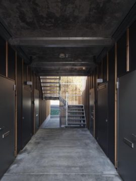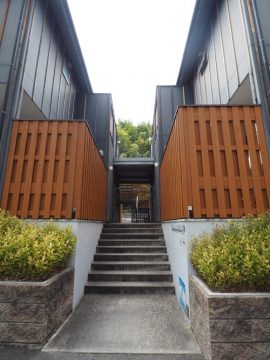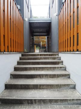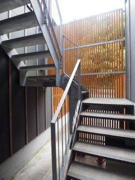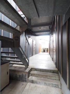 奥の鉄骨階段へ。