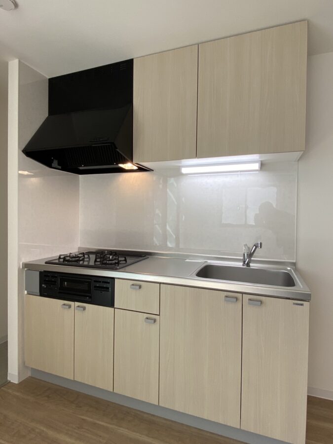 ガス3口コンロ付、エアコン2基、BS、給湯、ガス(都市ガス)、TVインターホン