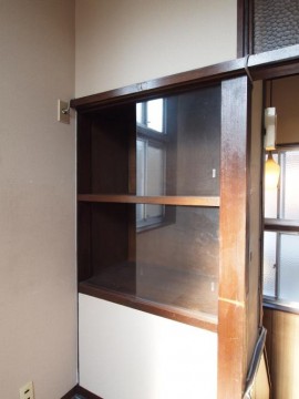 大きな造り付けの棚には、