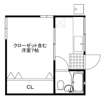 部屋の中にキッチン、風呂、トイレの揃った