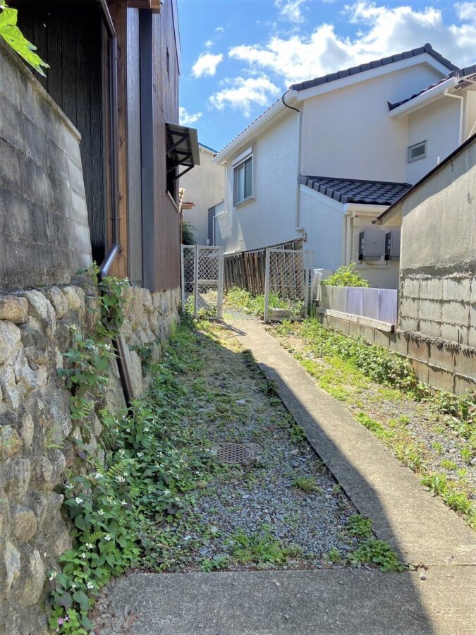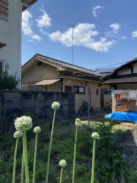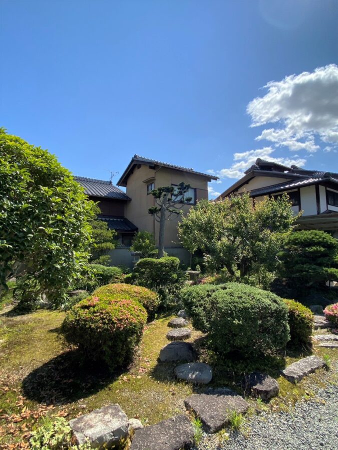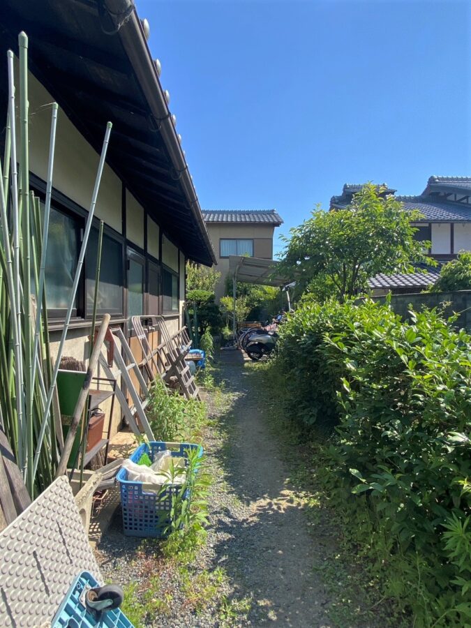 敷地の奥に平屋がある。