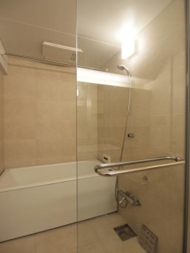 ガラス張りの浴室も素敵だ。