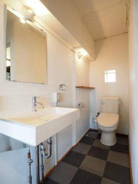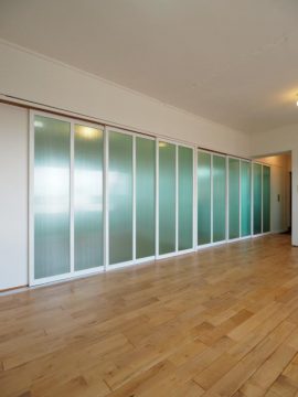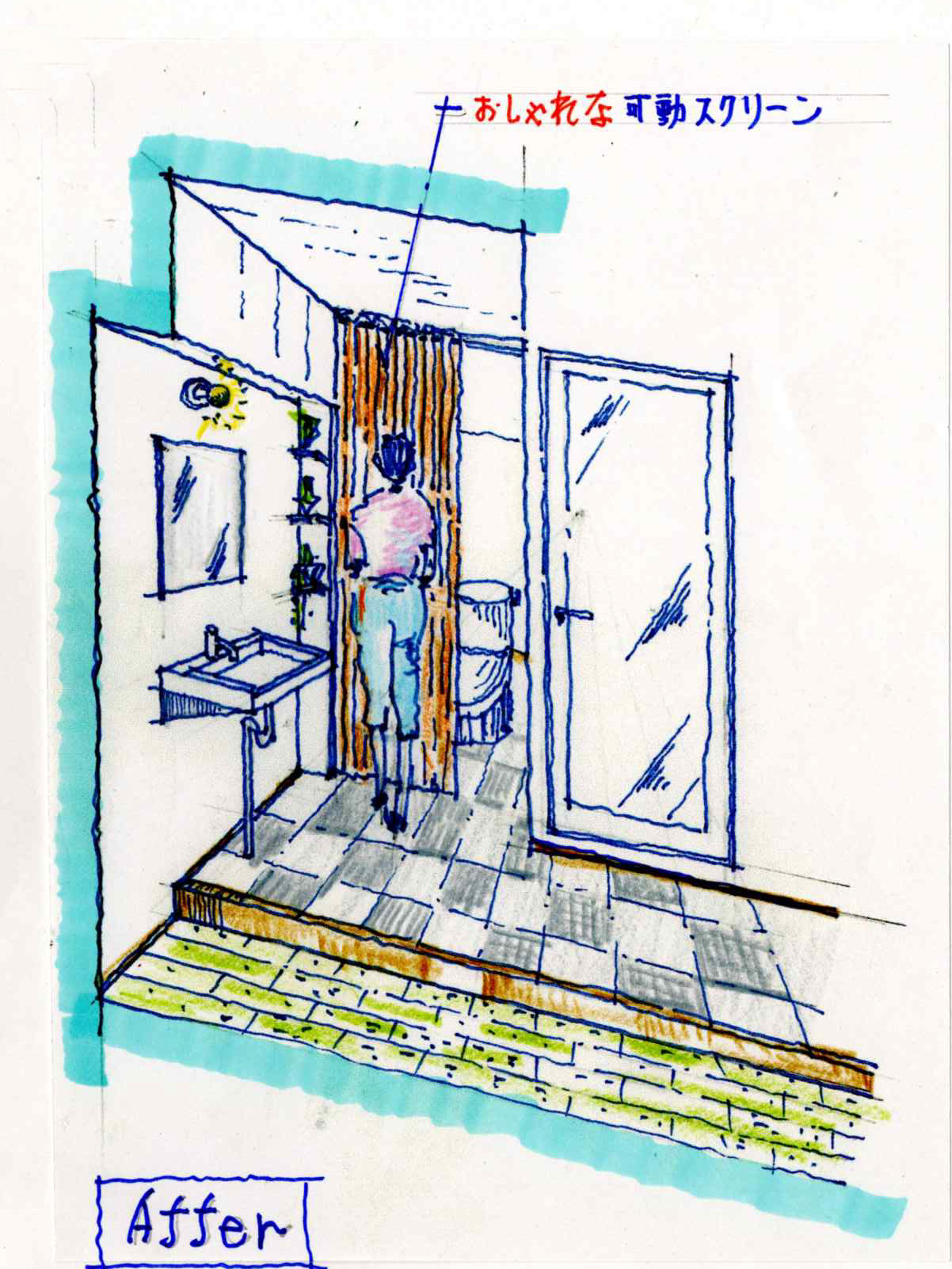 洗面所とトイレを可動スクリーンで仕切りました。