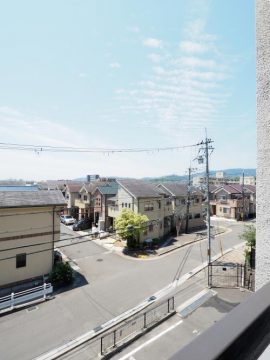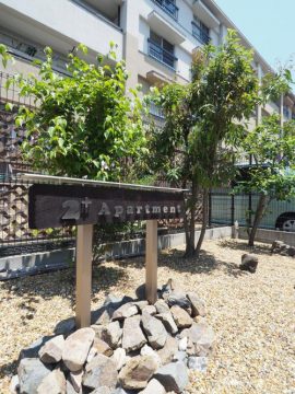 マンションが立ち並ぶ中、