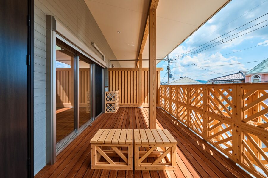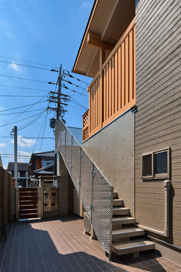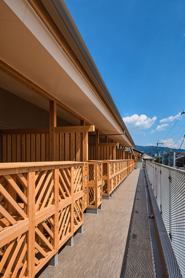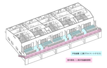 バルコニーの先には住民同士が行き来できる空中路地があって、
