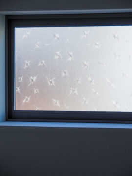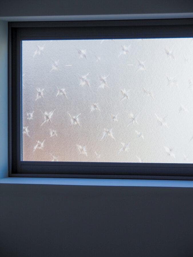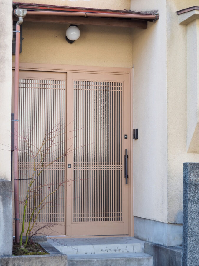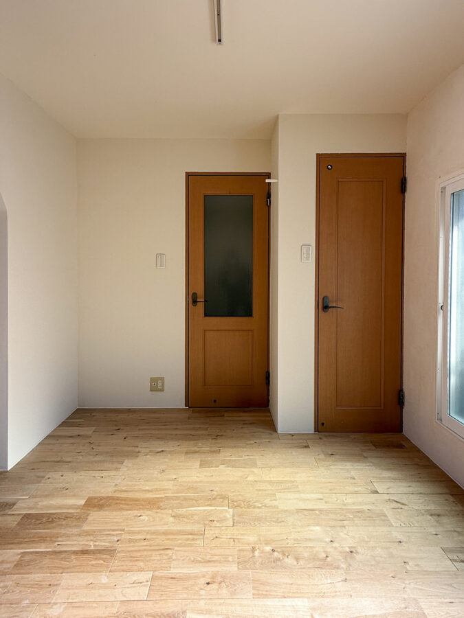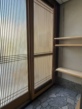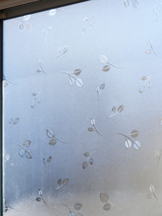 リノベーション前から残る型板ガラスの窓と、