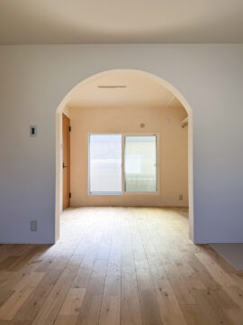 二階へ上がると、アーチ状の開口部が見える。