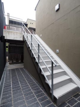 ちょっと古びた感じがカックイイ、黒のタイル。